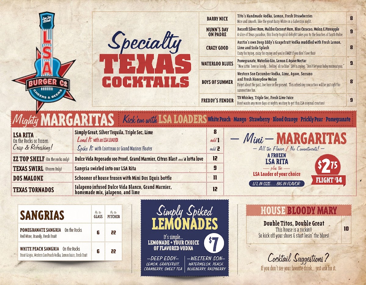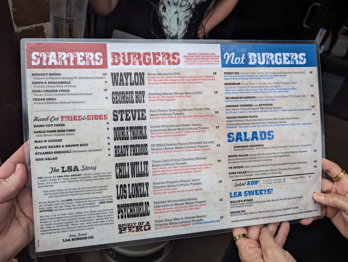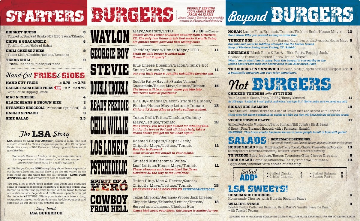 Welcome to LSA Burger Co., a hidden gem nestled in the heart of Denton, Texas, at 113 W Hickory St. This vibrant eatery captures the spirit of downtown with its unique burgers and welcoming bar atmosphere. With customer favorites like the Los Lonely burger and irresistible brisket queso, their menu promises to excite your palate.